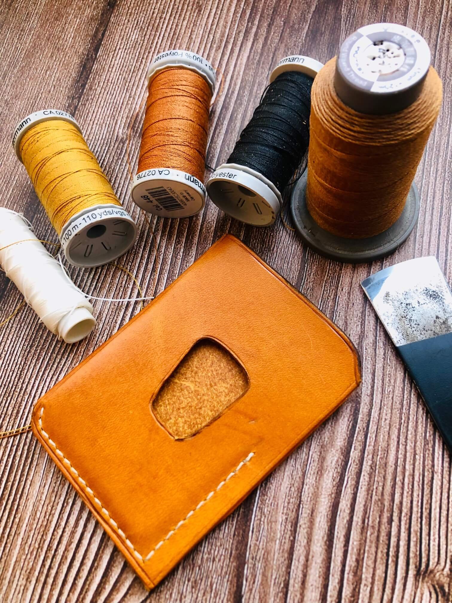 Minimalist camel leather cardholder. Handcrafted with care, designed for everyday use